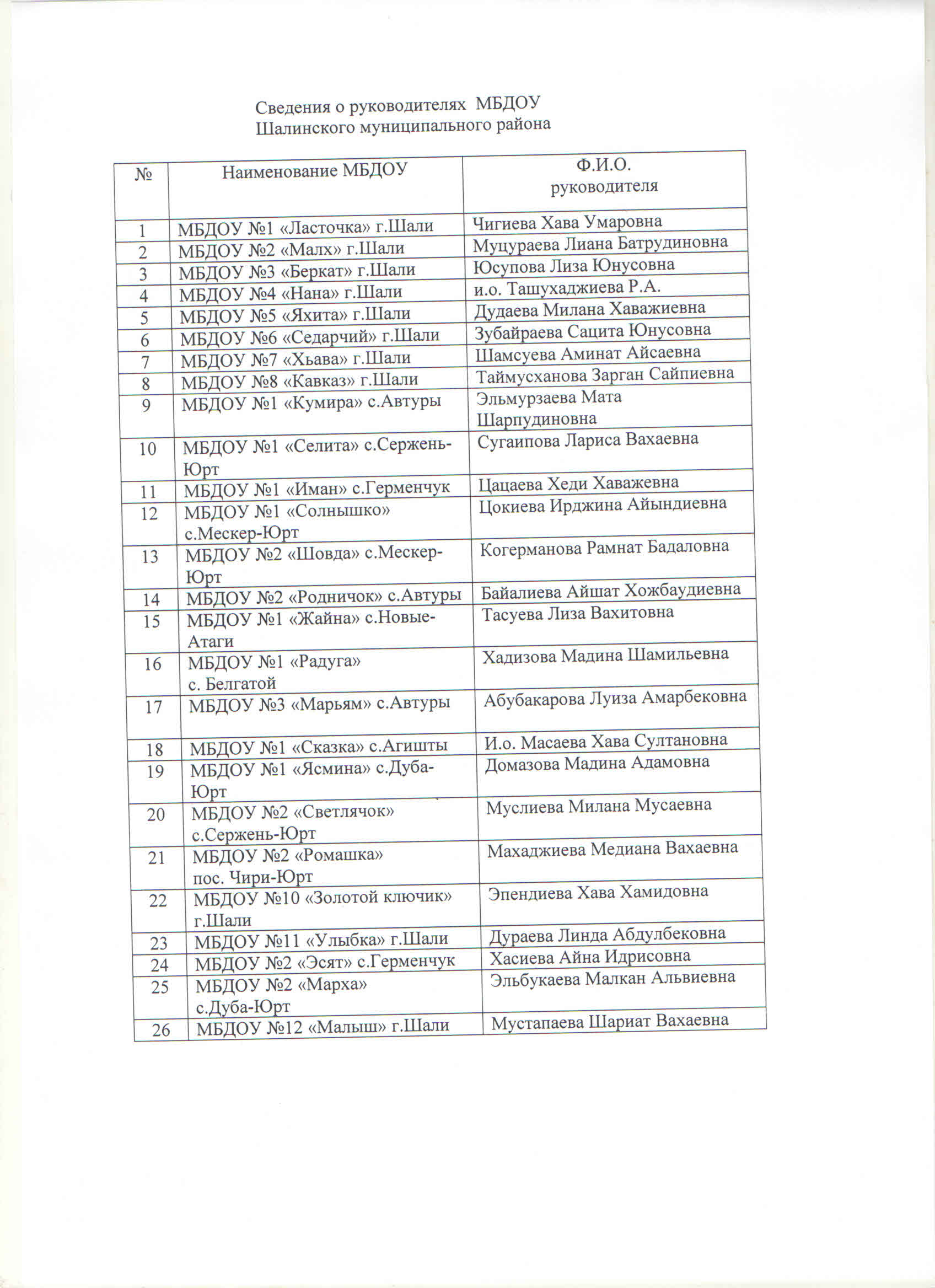 Сведения о муниципаьлных бюджетных дошкольных образовательных учреждениях Шалинского муниципального района