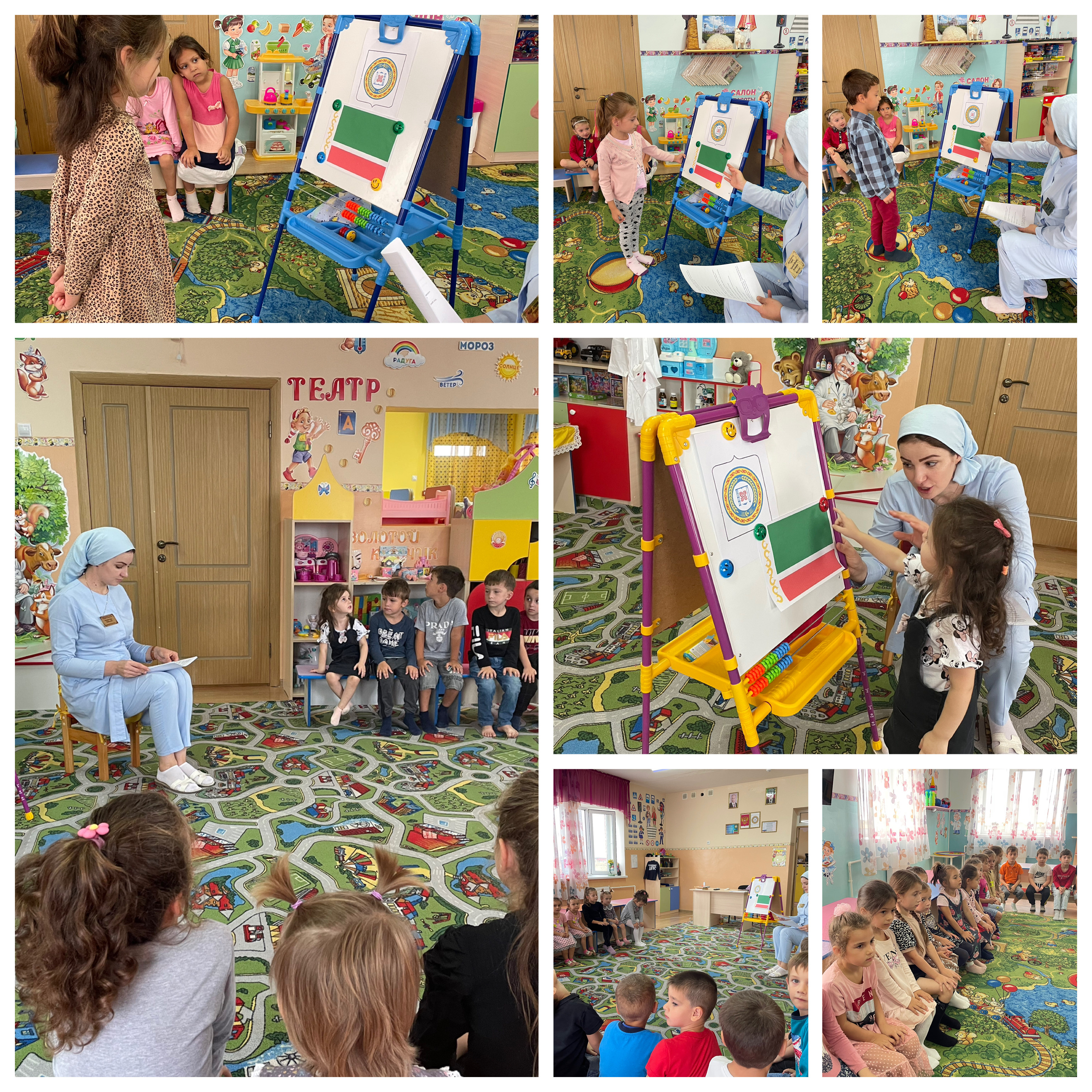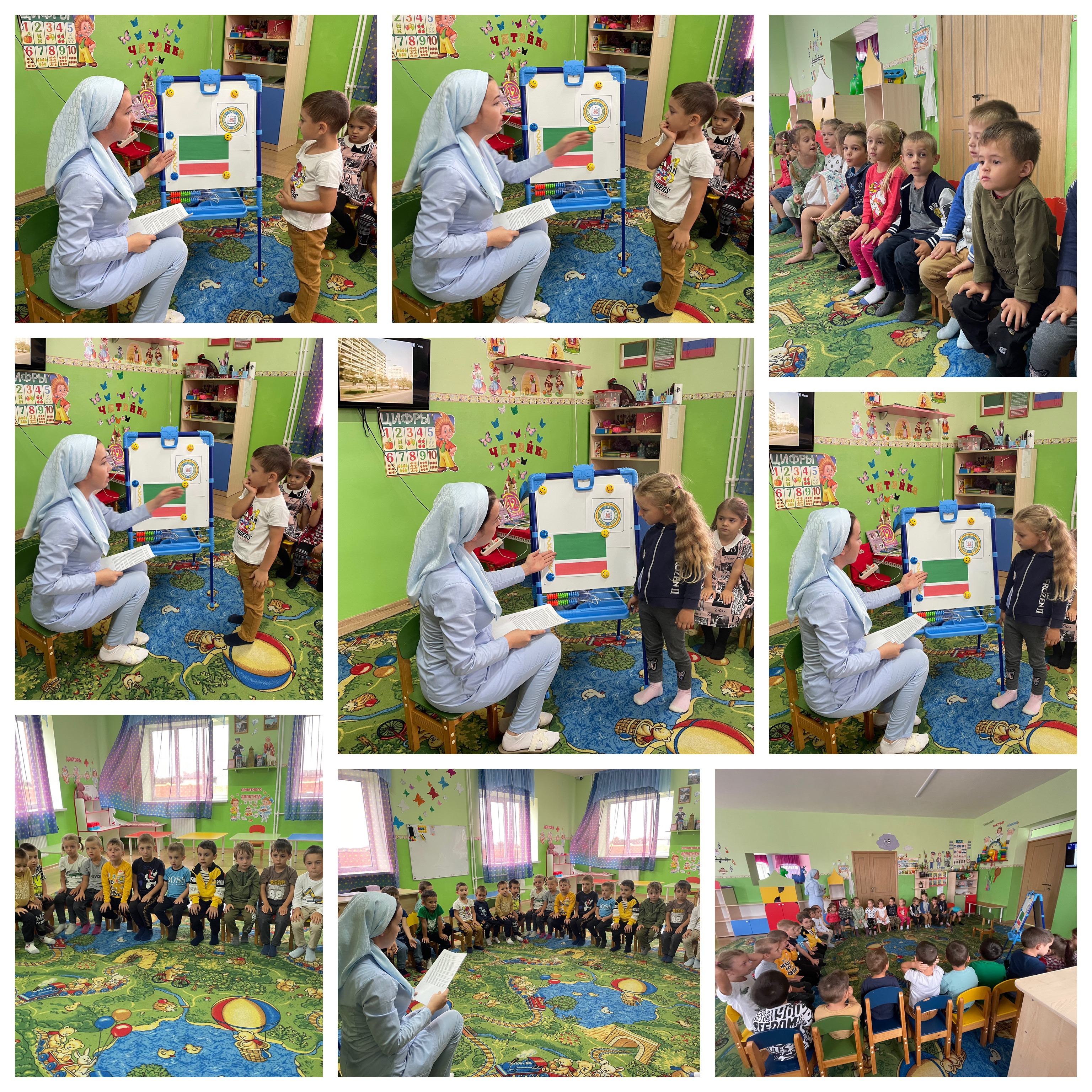 В рамках празднования Дня Республики дети старшей и средних групп совершили виртуальную экскурсию по Чеченской Республике. Воспитанники увидели природу родного края, познакомились с народными промыслами, народным фольклором, вспомнили символику ЧР и поговорили о национальностях, проживающих на территории нашей республики. Особенно детям понравилось играть в народные игры, разучивать народные танцы, рассказывать стихи и петь песни о красоте родного края.